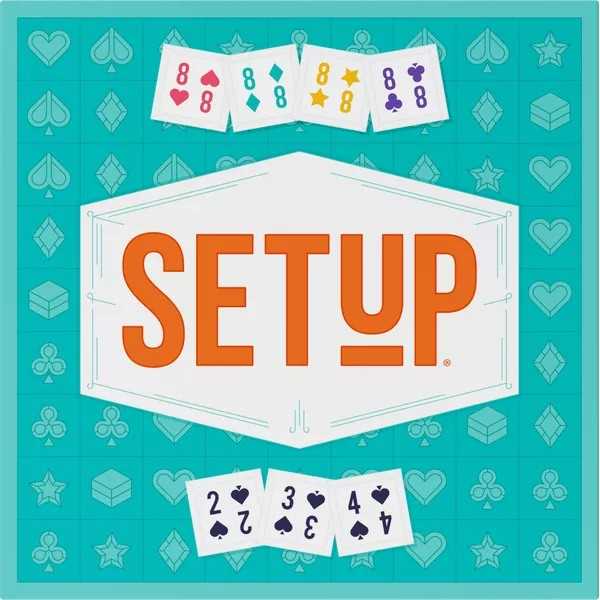 SETUP is a game of strategic tile placement, making sets of numbers of matching suits. You can't always plan in advance though as the tiles stack, so a sequence you had in mind may disappear when your opponents take their turn.